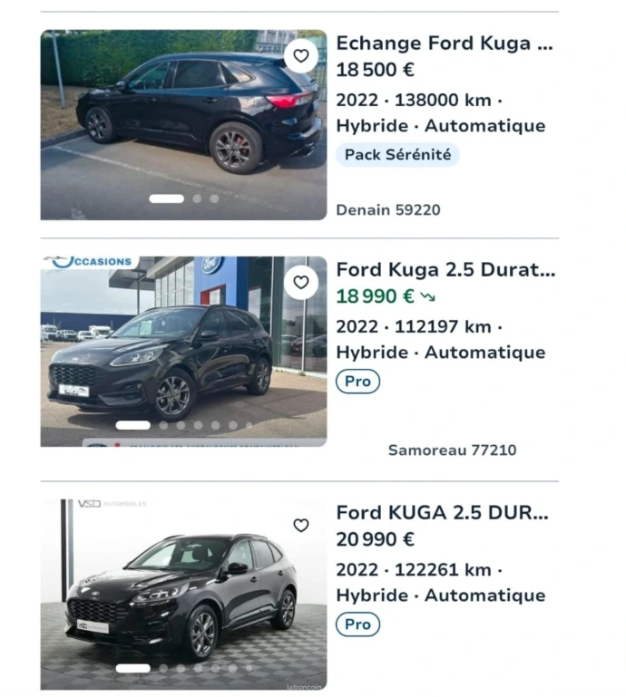 Prenons l'exemple concret d'un Ford KUGA ST-Line. En France, le marché local affiche souvent des tarifs élevés en raison d'une forte demande et d'une offre limitée en concessions. Notre prix est inférieur car nous appliquons le juste prix, sans marges intermédiaires inutiles.