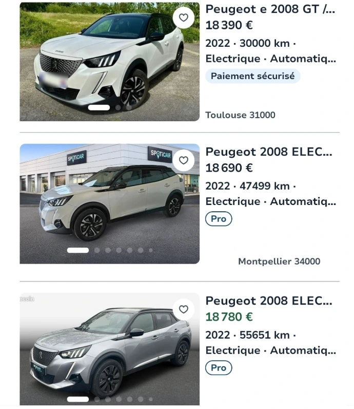 Une nouvelle comparaison concrète, une Peugeot 2008 Électrique GT BVA : alors que les tarifs constatés en réseau classique tournent autour de 18 500 €, nous avons conclu la vente de ce modèle pour 15 500 €. Cet écart s'explique par notre approche du juste prix : en supprimant les marges intermédiaires et les frais de structure inutiles, nous rendons la qualité accessible au tarif réel du marché.