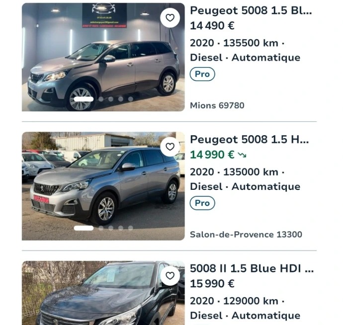 Regardons maintenant le cas d'une Peugeot 5008 Active Business 130cv BVA8 7 places. Sur le marché de l'occasion actuel, les modèles avec un kilométrage similaire s'affichent régulièrement entre 14 500 € et 16 000 €. Chez LIB'CAR, nous avons livré ce véhicule à notre client pour 12 900 €. Cette différence confirme notre engagement : vous offrir le juste prix en allant chercher les meilleures opportunités là où elles se trouvent, sans empiler les marges de distribution classiques.